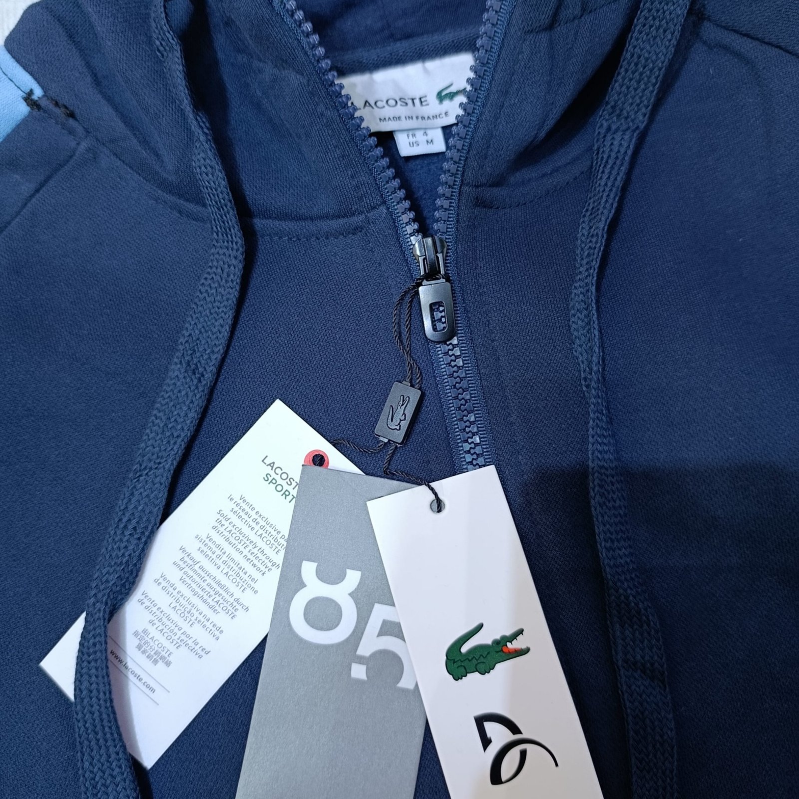 Buzo con Capucha Lacoste Azul Y Gris con Cremallera para Hombre.