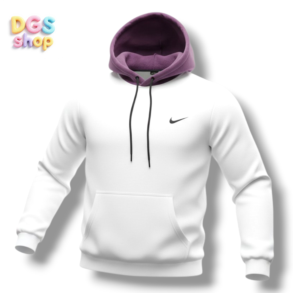 Hoodie Nike para hombre fabricado en algodón tipo piel de durazno, con interior suave y ligeramente afelpado que aporta una sensación extra cómoda sobre la piel. Su diseño presenta capucha ajustable con cordones, puños y basta acanalados que ayudan a conservar el calor y mejorar el ajuste. Incluye el icónico Swoosh encauchetado en el pecho y combina cuerpo y capucha en colores contrastantes (negro con beige, beige con negro y blanco con capucha morada) para un look urbano y moderno. Es ideal para uso diario, salidas casuales o entrenamientos ligeros en clima fresco.