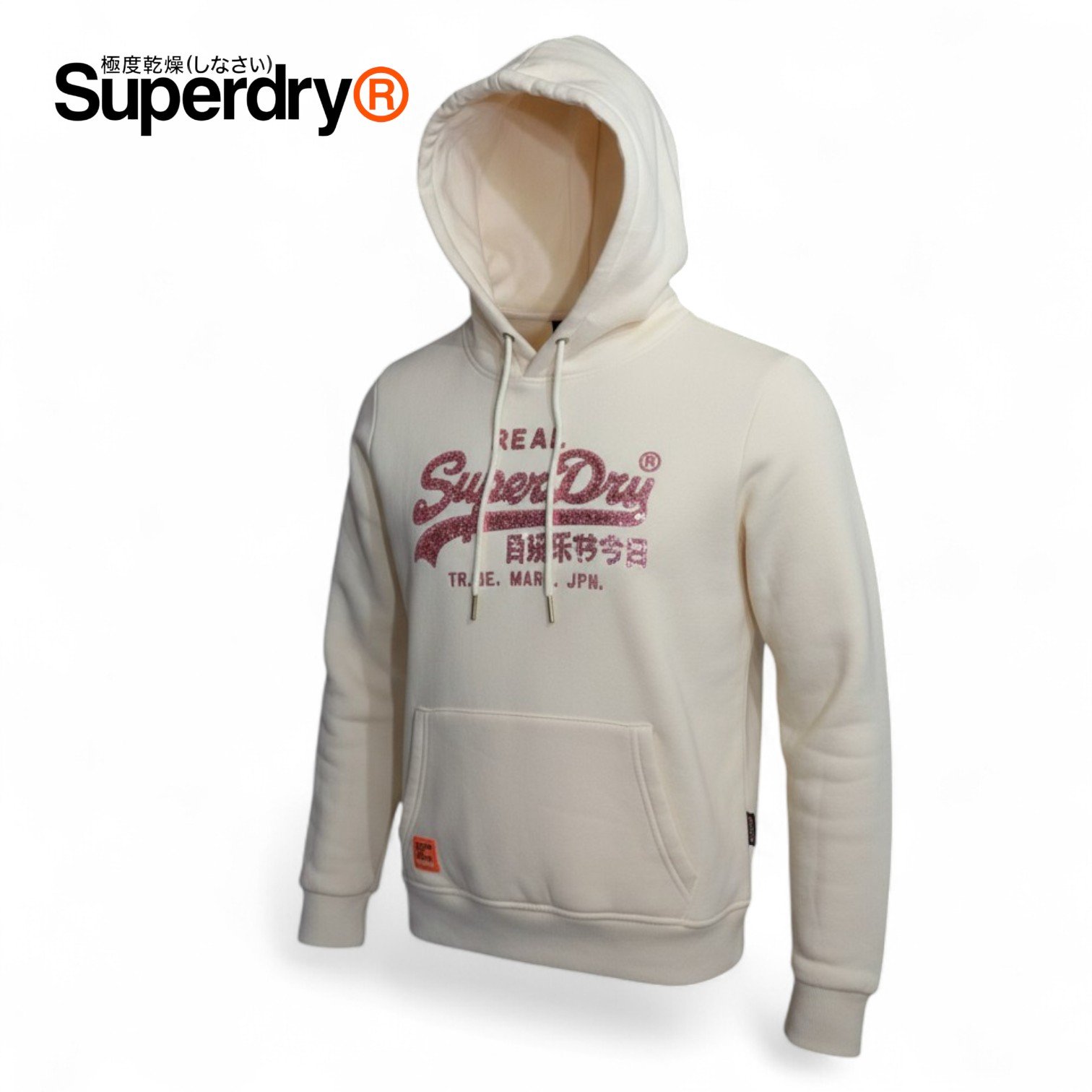 Hoodie Superdry de mujer fabricado 100% en algodón, con logo brillante y diseño moderno. Disponible en dos colores: rojo y blanco crema.