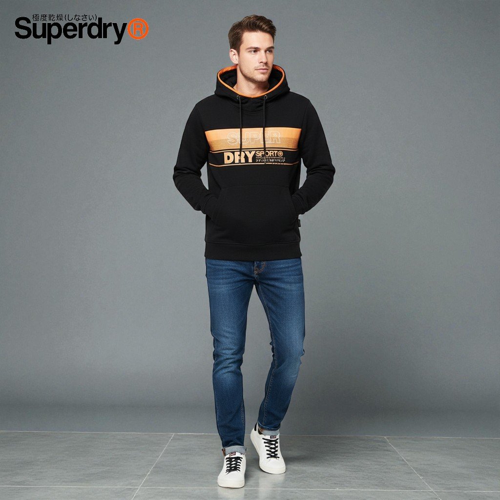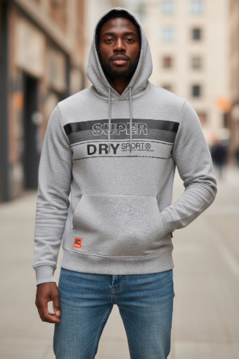Este hoodie Superdry para hombre combina comodidad, durabilidad y estilo moderno. Fabricado al 100% en algodón de alta calidad, ofrece una textura suave y transpirable ideal para el uso diario. Su diseño presenta el icónico logo Superdry Sport® en el pecho, con detalles de líneas horizontales que aportan un toque atlético y contemporáneo.