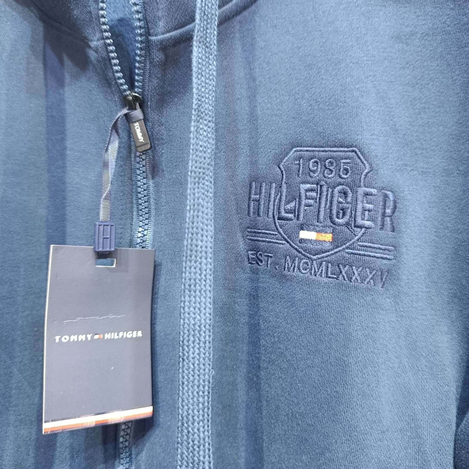 Hoodie Tommy Hilfiger de hombre con capucha, cierre completo, diseño colorblock y rib a rayas, en felpa suave para un estilo casual, cómodo y muy distintivo.